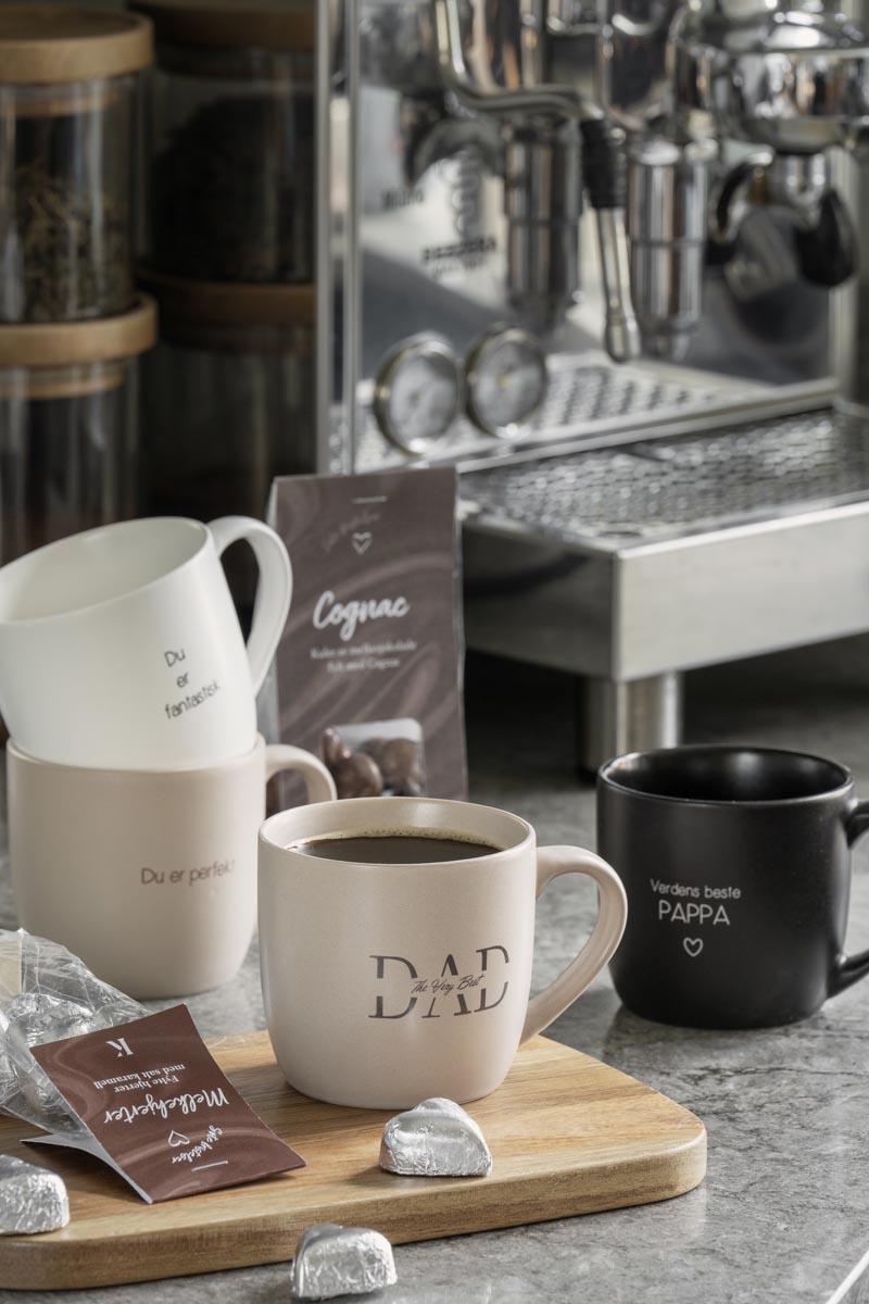Kaffen smaker ekstra godt av fine og kanskje litt gøyale kopper. Finn en favorittkopp som passer akkurat din paps!