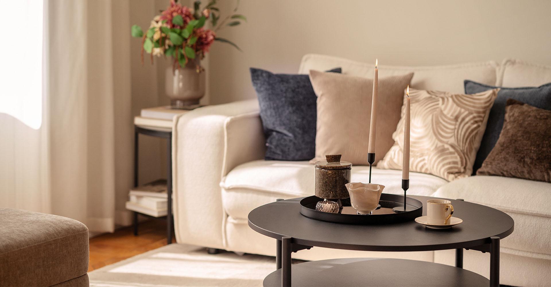 Tekstilene er helt sentrale i denne stilen og bidrar til å myke opp det minimalistiske uttrykket. Materialvalg som bouclé, chenille og velur gir varme og struktur, og spiller en viktig rolle i å skape dybde og karakter i rommet. Skap en harmoisk balanse i delikate nyanser og med diskré mønster gir et rolig, men raffinert preg.