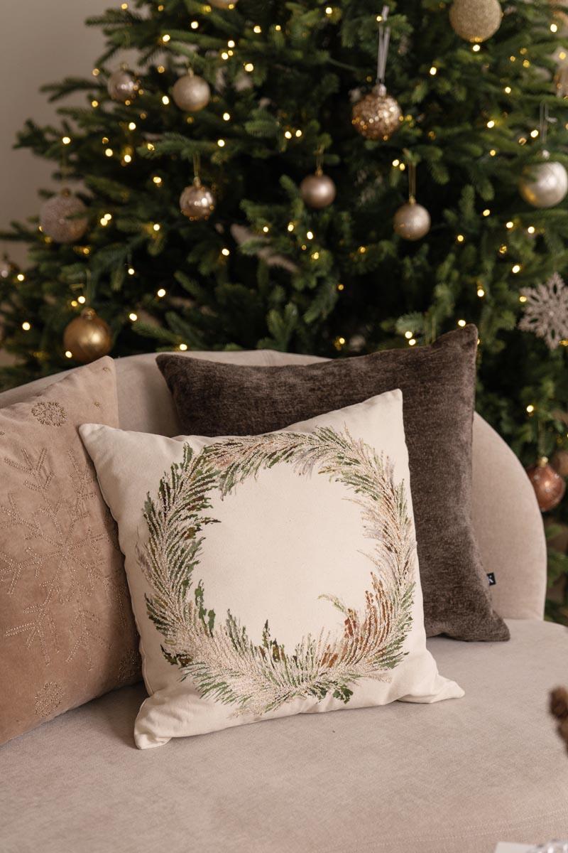 EN kombinasjonen skaper en rolig og varm julefølelse med lyse kremtoner kombinert med dypere, lune nyanser. Den broderte snøkrystallputen gir et elegant vinterpreg med et hint av gull som gir et festlig løft. De ensfargede putene i myke strukturer balanserer uttrykket og gir en harmonisk helhet. Perfekt for deg som ønsker en rolig, koselig og stilren julestemning i sofaen.