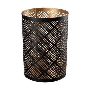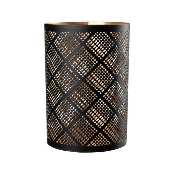 Lekker telysholder i metall, sort utenpå og gull på innsiden. Mønsteret på telysholderen skaper et varmt og vakkert spill av lys fra flammen til telyset.