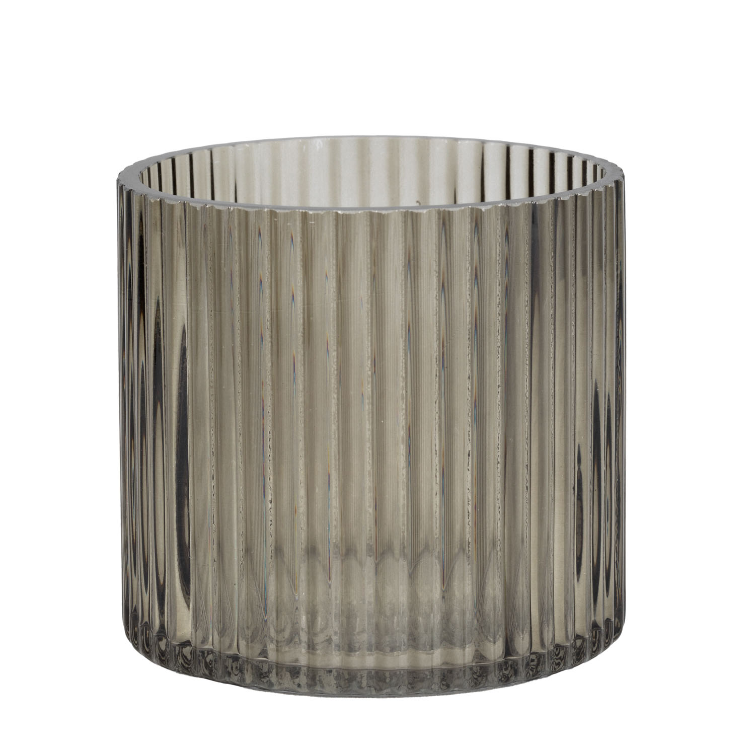Telysholder i grønnfarget glass i trendy rilleform. Nydelig å sette på bordet, enten ute eller inne. Gir et lekkert skyggespill av rillene rundt. Kan også brukes som dekorasjon med strå eller blomster.