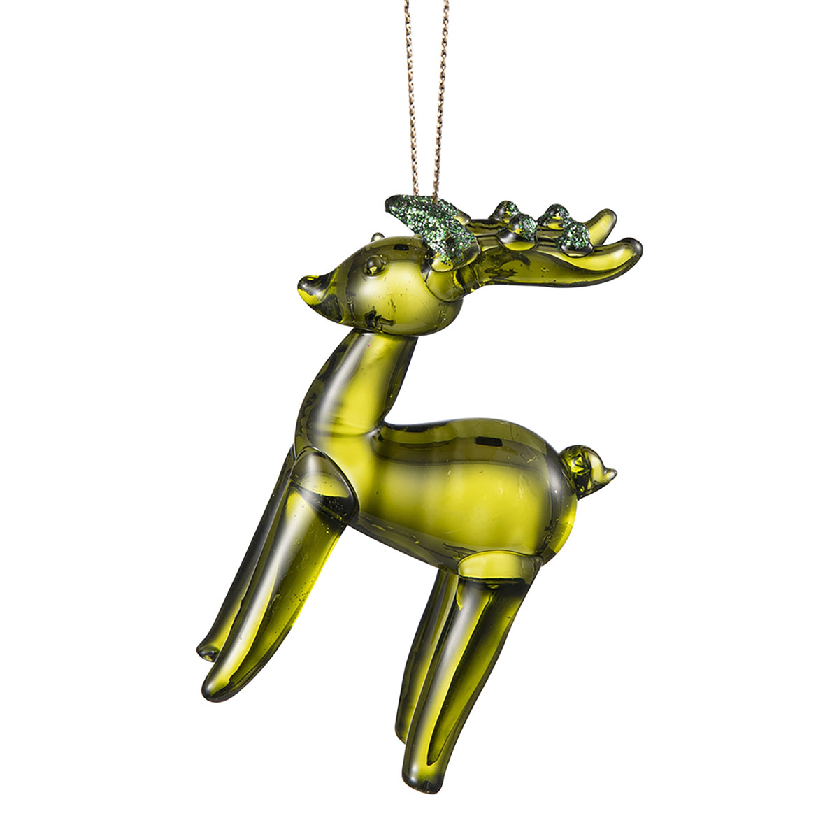 Denne hengende dåhjorten i grønt glass er et nydelig tilskudd til julekuler og annen julepynt i tradisjonelle farger. Små detaljer med naturlig preg er en enkel måte å gjøre et hvert rom mer trendy, også juletreet.