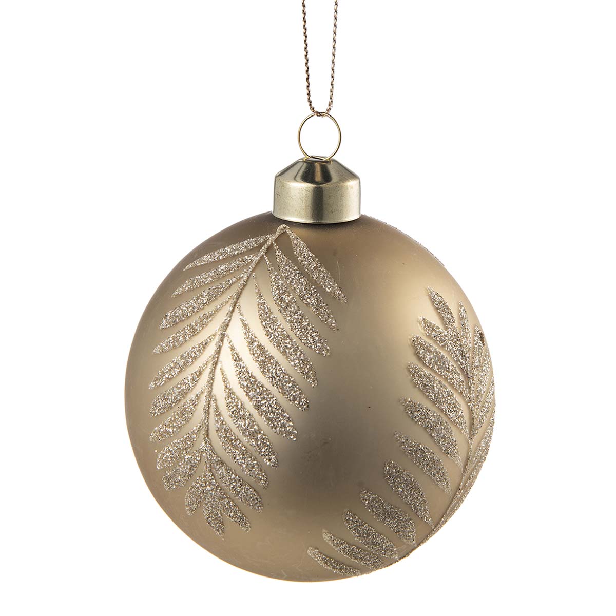 En nydelig julekule med glitter detaljer av blader som er fantastisk fin på juletreet. Et tips er å kombinere ulike farger og mønstre på julekulene for å skape et personlig og unikt juletre! Julekule Balder kommer også i brun, grønn og burgunder, og de er flotte å kombinere sammen.