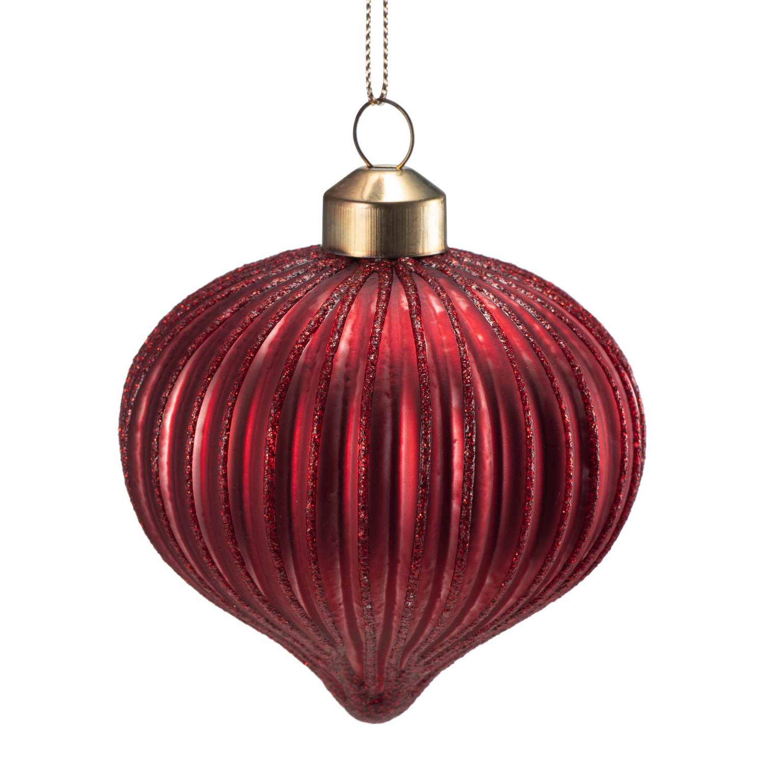 Nydelig rød julekule i glass med riller. Morsom og leken form som passer perfekt på juletreet denne julen. Frisk opp og pynt et tre som gjenspeiler din smak og personlighet. Kombiner den gjerne med de andre fargene av julekule dråpe.