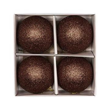 Super lekre julekuler i med fire stykk i pakken. Laget av plast og dekorert med glitter. Veldig flotte på juletreet, og kombiner de gjerne med julekuler i grønt eller gull for et komplett uttrykk.