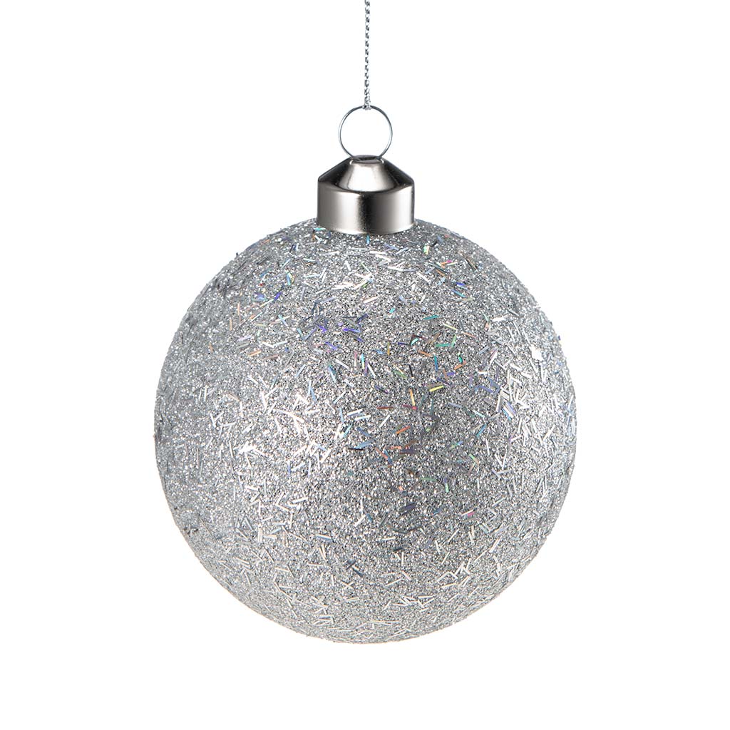 Forvandle juletreet ditt med vår elegante julekule i sølv med glitterdetaljer! Denne stilfulle dekorasjonen kombinerer en klassisk sølvfarge med delikate glitterdetaljer.