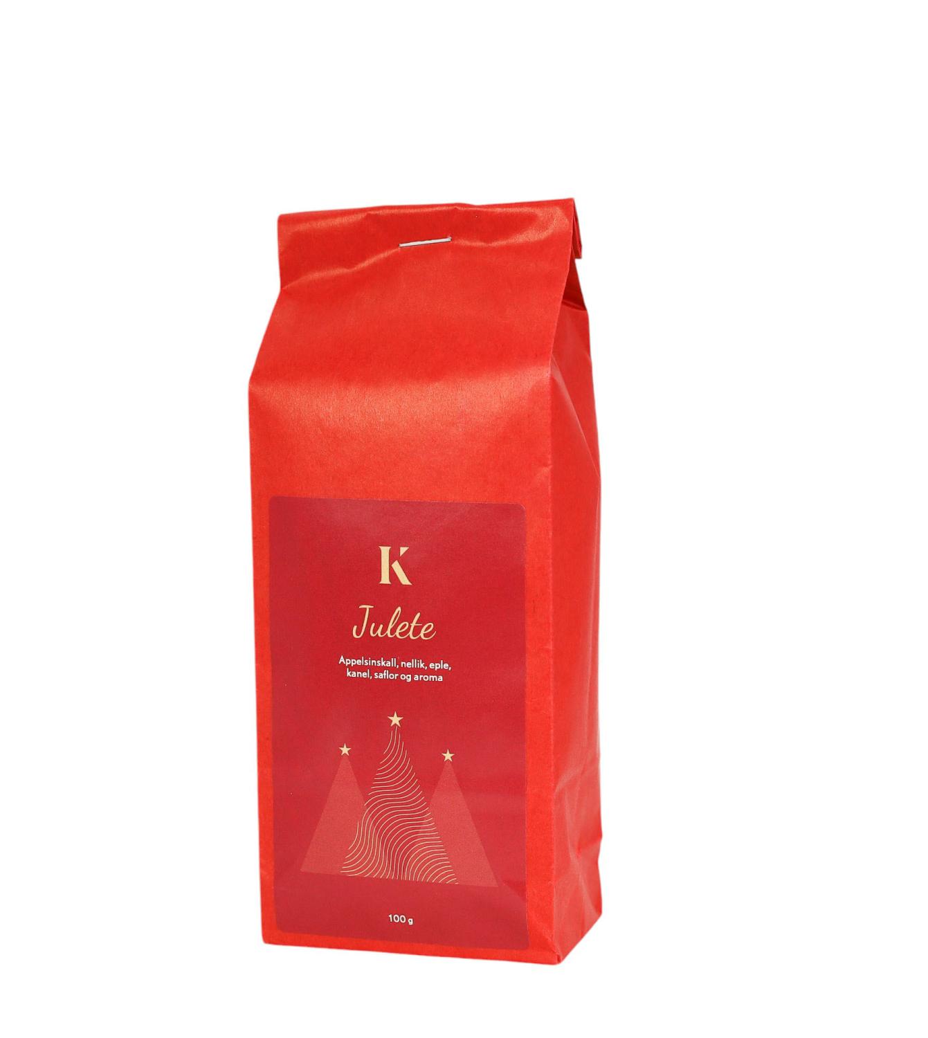 En pose med julete, fylt med smakfulle ingredienser som appelsinskall, nellik, eple, kanel, saflor og aroma – perfekt for å sette deg i den riktige stemningen i juletiden. Teen kommer i en rød emballasje som gjør den fin å gi som en liten gave eller bare å ha hjemme for koselige vinterstunder. Enten du nyter den alene eller sammen med gode venner, vil denne juleteen garantert skape en varm atmosfære.