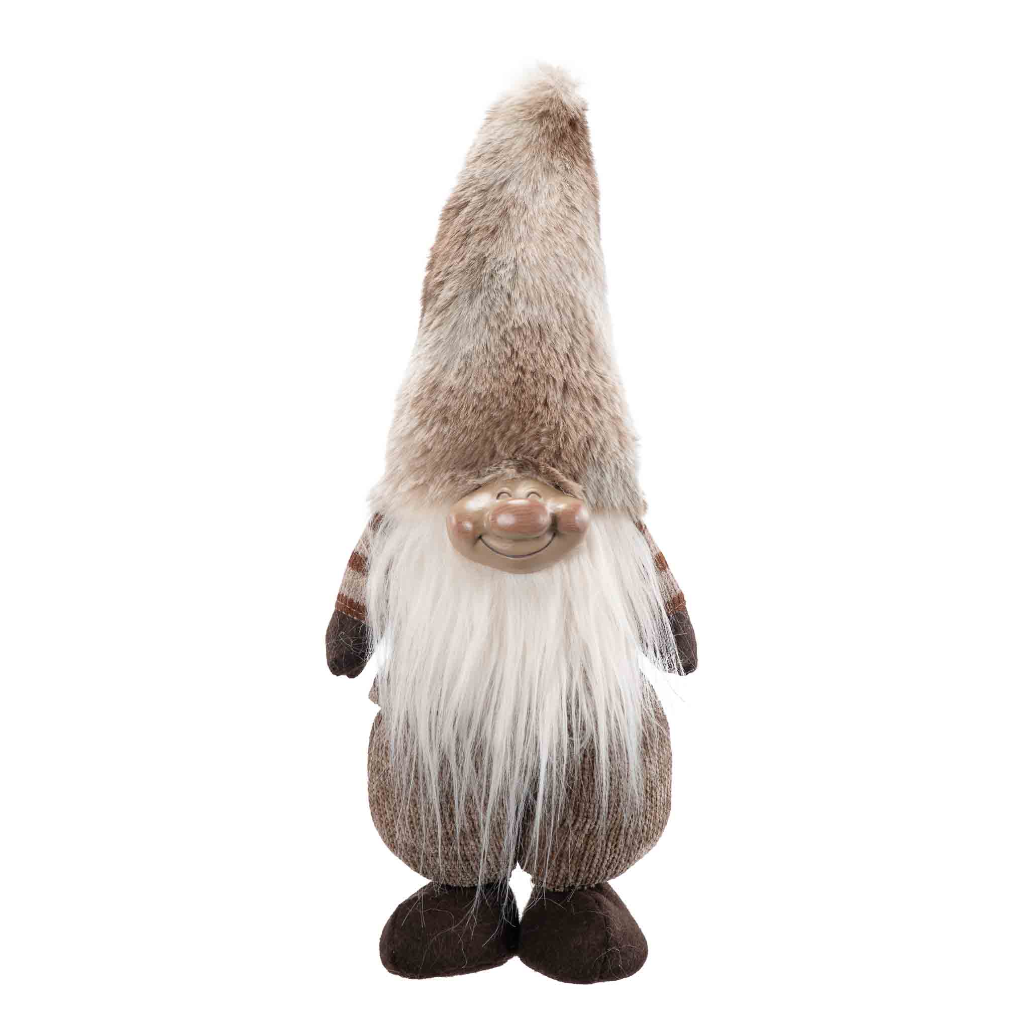 Møt vår sjarmerende gnom i brun farge med hvitt skjegg. Denne snille gnomen bringer en varm og koselig atmosfære til hjemmet ditt, perfekt for å spre glede og hygge i juletiden.
