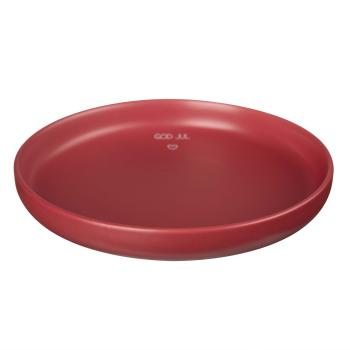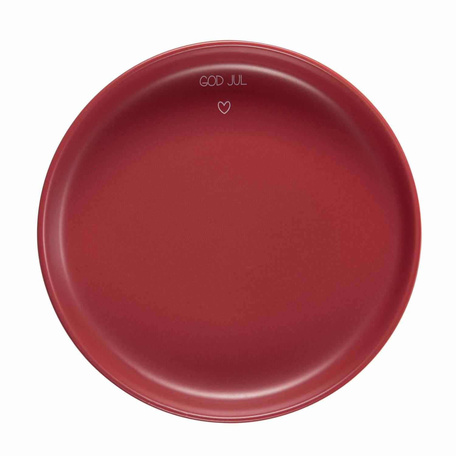 Rød og fin asjett med tekst God jul og et lite hjerte. Perfekt til frokoster i romjulen!