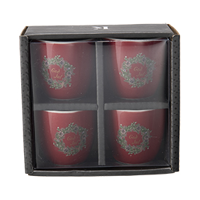 Eggeglass i vår populære juleservise serie Krans. Her får du kopp, skål og asjett i samme serie. Selges i pakke med 4 stykk eggeglass.