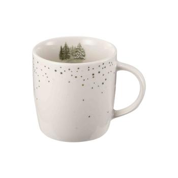 Koselig kopp med julemotiv, en liten skog inni koppen og et dryss av glitterlignende dekor på kanten. Dette juleserviset, kalt "Julemagi", er ideelt for å legge til en ekstra dose stemning til julens mange måltider og festligheter. Så tilfør en lite dæsj julemagi til bordet, og gjør måltidene enda mer spesielle og minneverdige. Se hele Julemagi-serviset her.