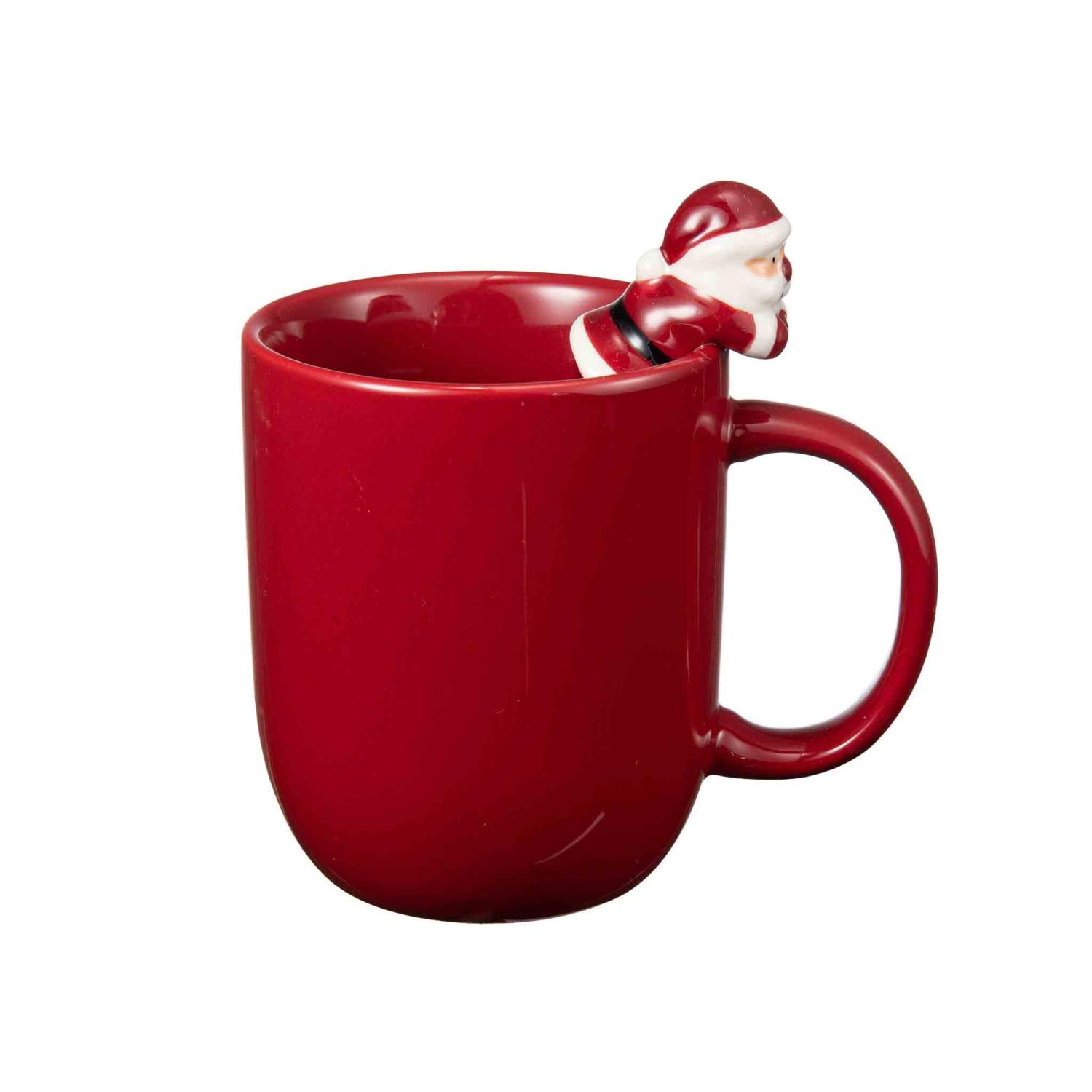 Koselig rød julekopp med en søt nisse som titter over kanten. Fine til gløgg, kakao og selvfølgelig julekaffen. Kos deg!