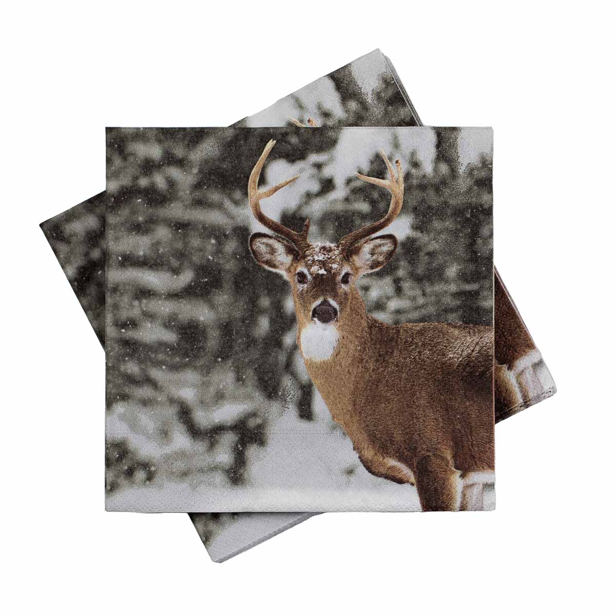 Herlig vinterserviett med bilde av hjort i skog. 20stk i pakken.