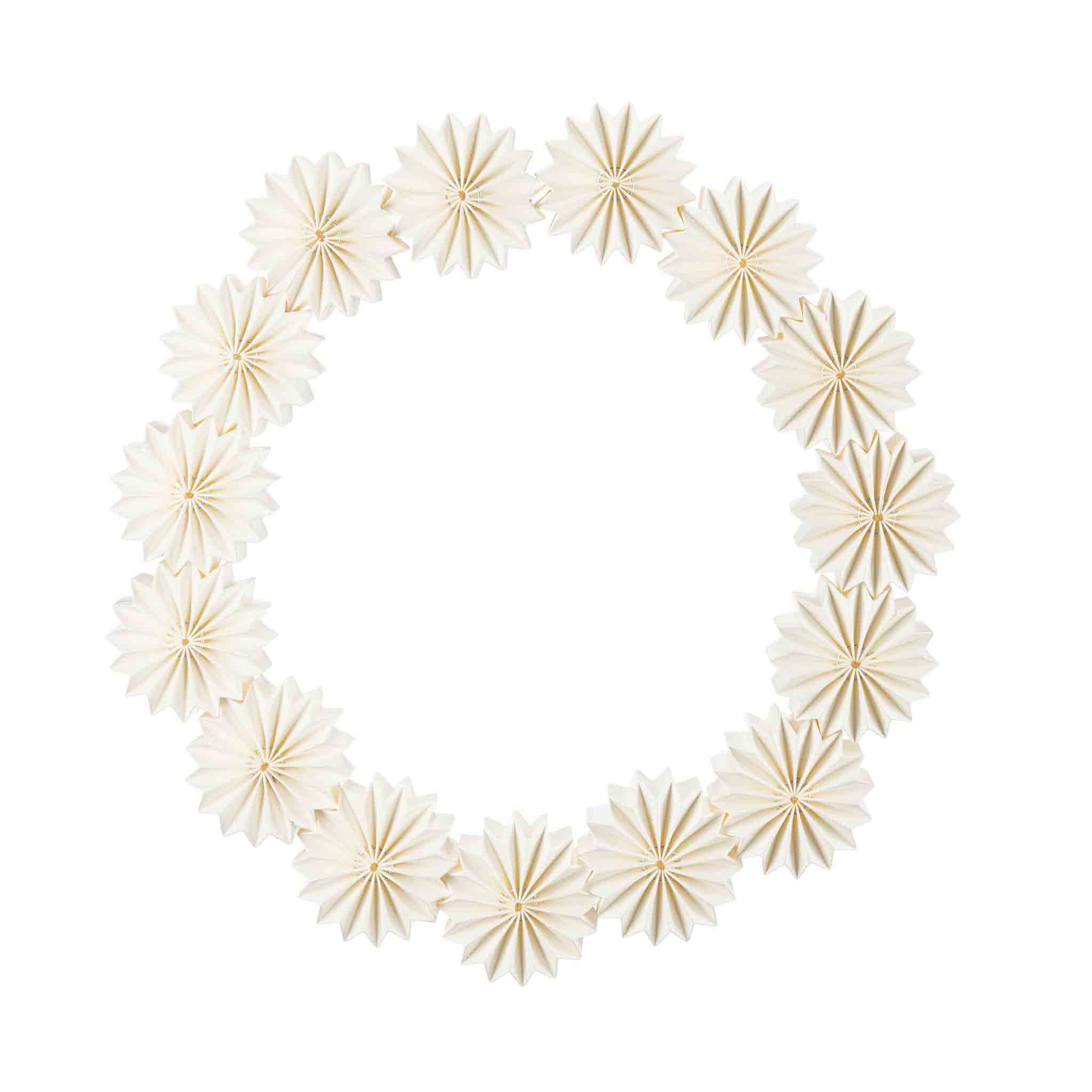 Krans Lina er en krans som passer fint i vinduet eller som aksent på døra. Den kommer i en eske slik at den er enkel å oppbevare eller perfekt å gi bort som en gave. Kransen er laget av papir, og har en søt blomsterform.
