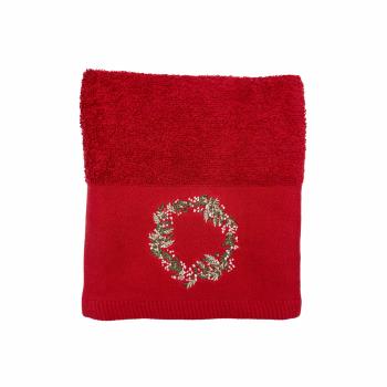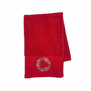 Dette røde håndkleet har en dekorativ krans brodert i enden, som gir et hint av julestemning til badet eller kjøkkenet. Laget av mykt materiale som gjør det behagelig å bruke til tørking av hender eller ansikt. Perfekt for å legge til et festlig preg i hjemmet i juletiden, eller som en hyggelig gave til noen du vil glede. Lett å vaske og vedlikeholde, slik at det kan brukes sesong etter sesong.