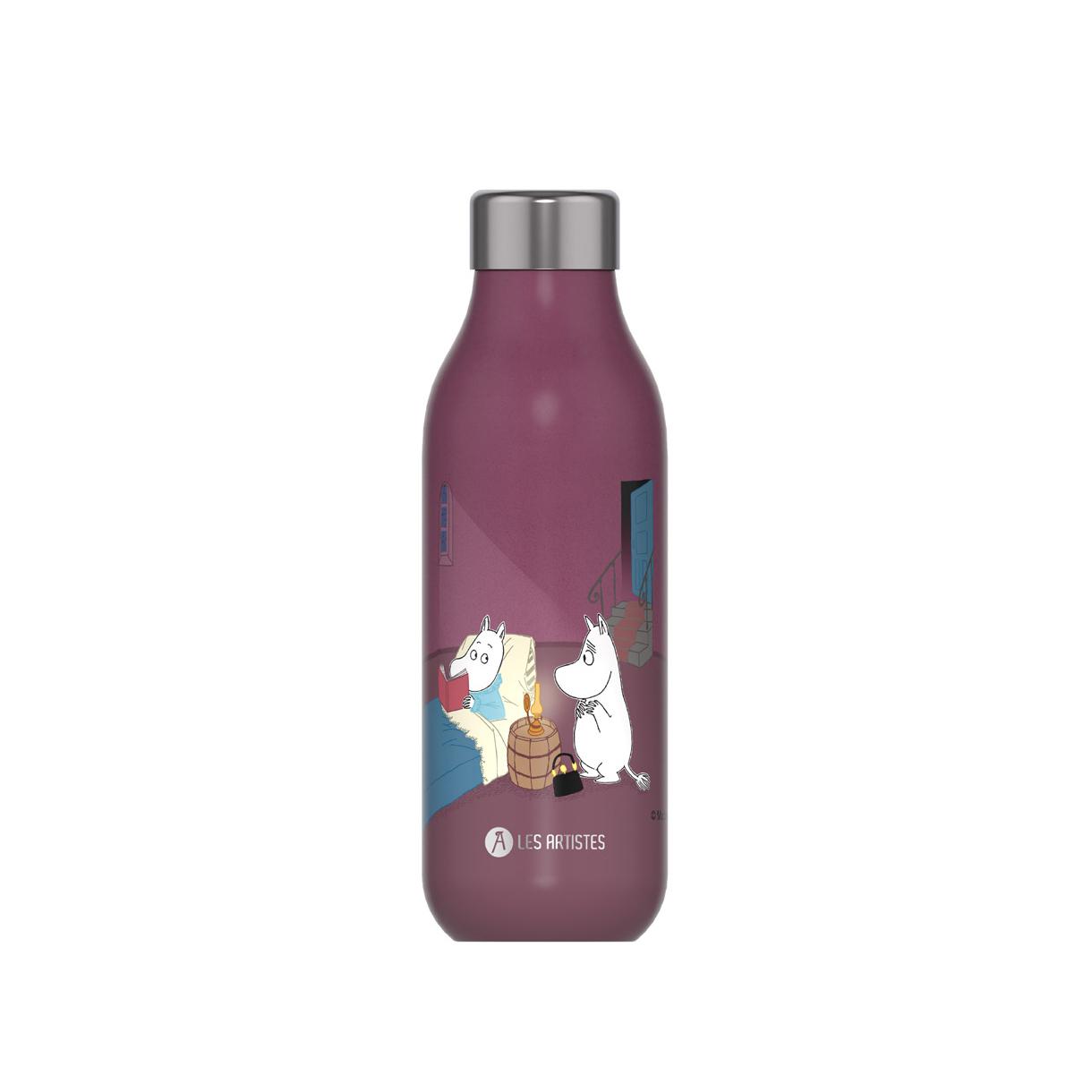 Les Artistes' Bottle Up termoflasker kommer i en herlig Mummiversjon med en Mummi-illustrasjon i lillafarge. Flasken, som rommer 0,5 liter, sørger for at drikken din holder seg varm i 12 timer og kald i 24 timer. Denne flasken et praktisk tilbehør for hverdagen og enkel å ta med seg hvor som helst.