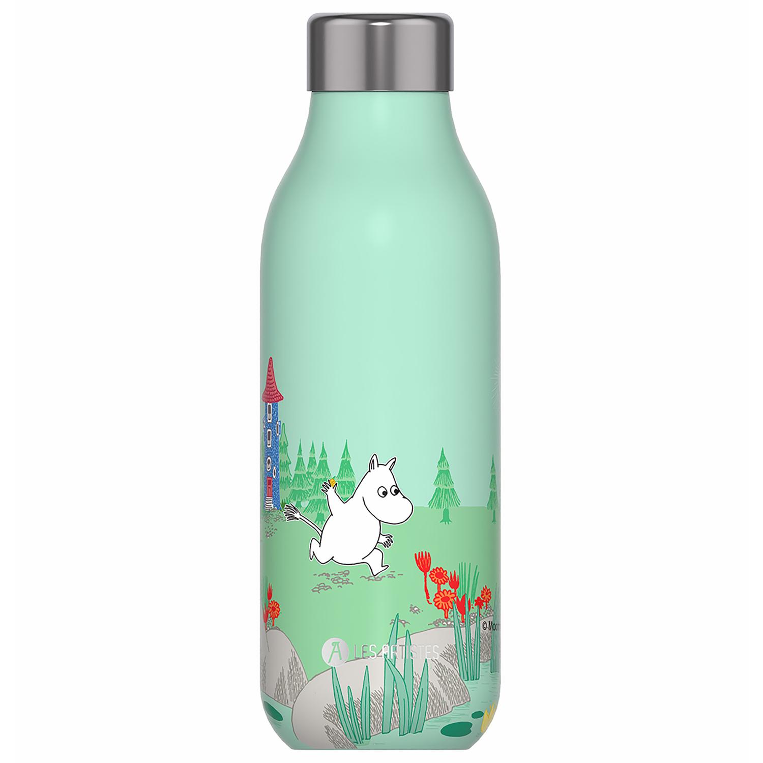 Ta med deg Mummi-universet på farten med denne grønne drikkeflasken fra Les Artistes! Perfekt for både varme og kalde drikker, takket være de isolerende materialene med kobberlag. Holder drikken varm i opptil 12 timer og kald i hele 24 timer. Den brede åpningen gjør det enkelt å fylle flasken med isbiter. Flasken er ikke egnet for kullsyreholdige drikker.