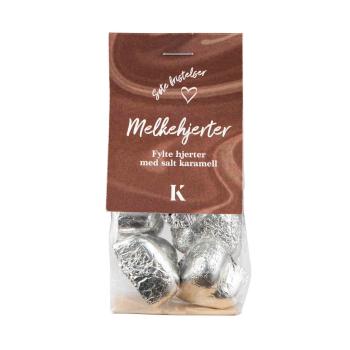 Søte sjokoladehjerter pakket inn i sølvfolie - fylt med deilig myk salt karamell.