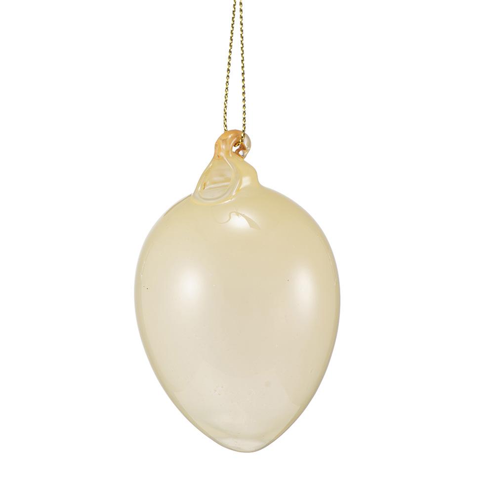 Glassegg til påske i pastell gult glass. Fin å henge på grener i en vase eller i et vindu. Kombiner gjerne med flere av sesongens fine glassegg. Elegant og diskret påskepynt.