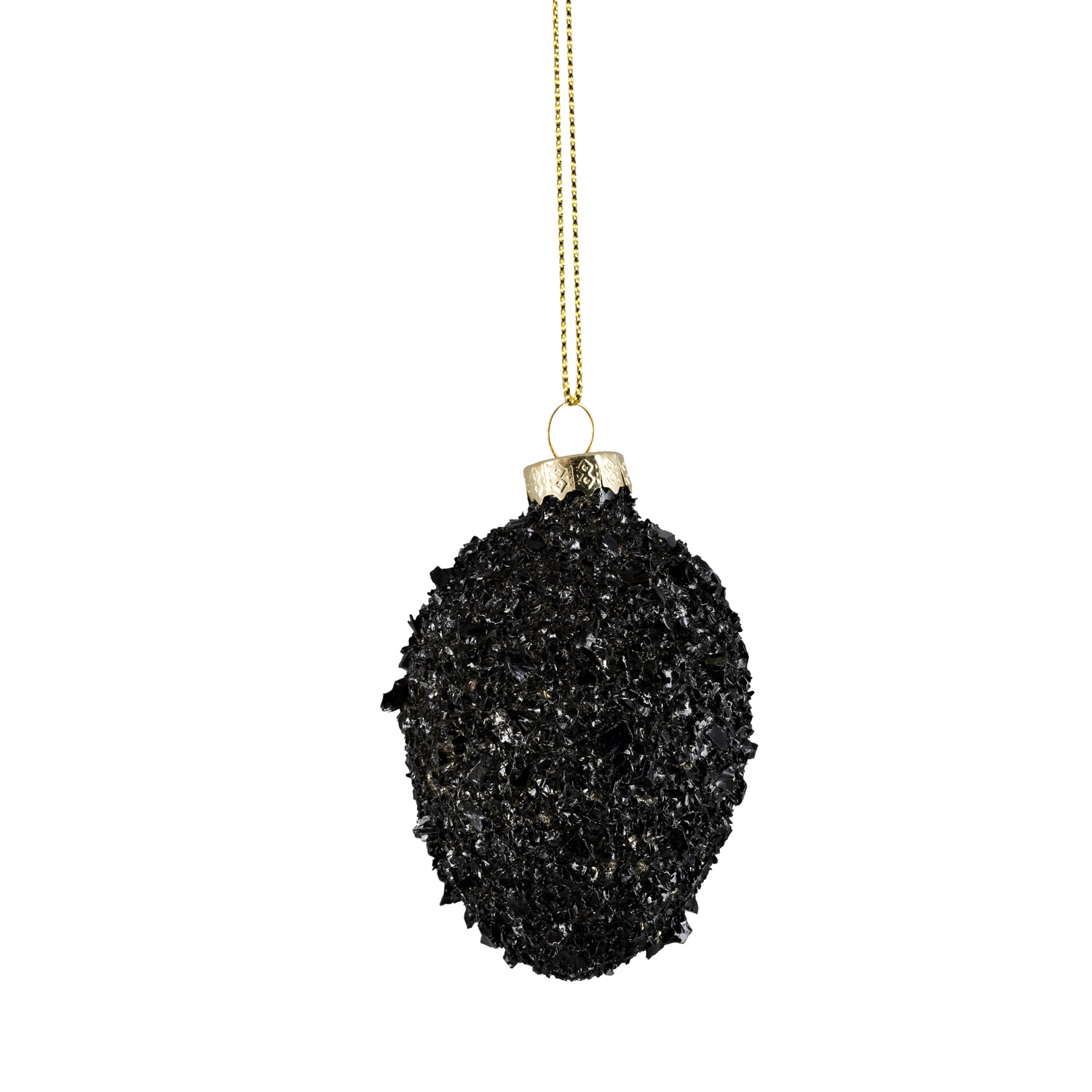 Råstilig glassegg med sorte glitterstener og gullfarget tråd. Dekorer lysfatet eller bruk de til å friske opp bordpynten.