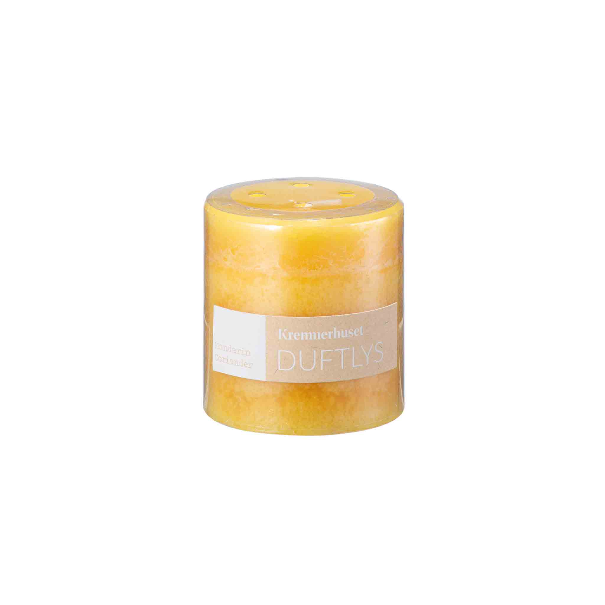 Duftlys bestående av 98% parafin og 2% duftolje. Brennetid: 36 timer. Mandarin Coriander duft.
