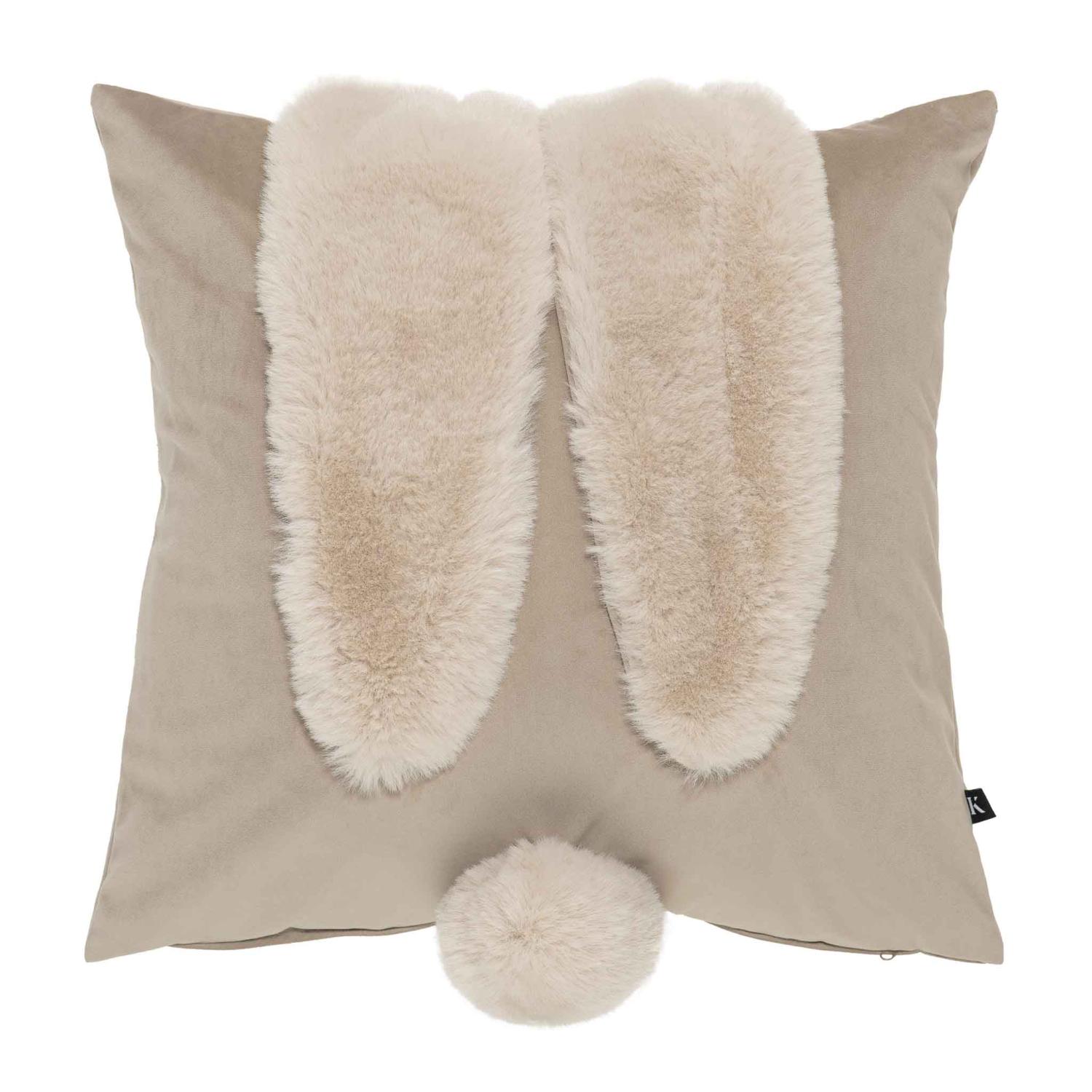 Et putetrekk i myk beige med søte kaninører og en liten, fluffy haledetalj som gir et lekent og koselig innslag. Den rolige fargen gjør det enkelt å plassere puten i ulike rom, samtidig som detaljene gir et tydelig nikk til påske.
