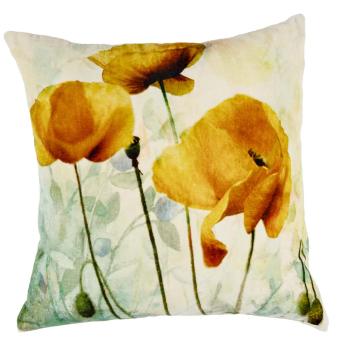 Lekkert putetrekk i deilig myk velur med flott mønster av valmuer i gul og bruntoner. Frisk opp med sesongens tuftede puter, samt matchende ensfargede puter i beige og grønntoner.