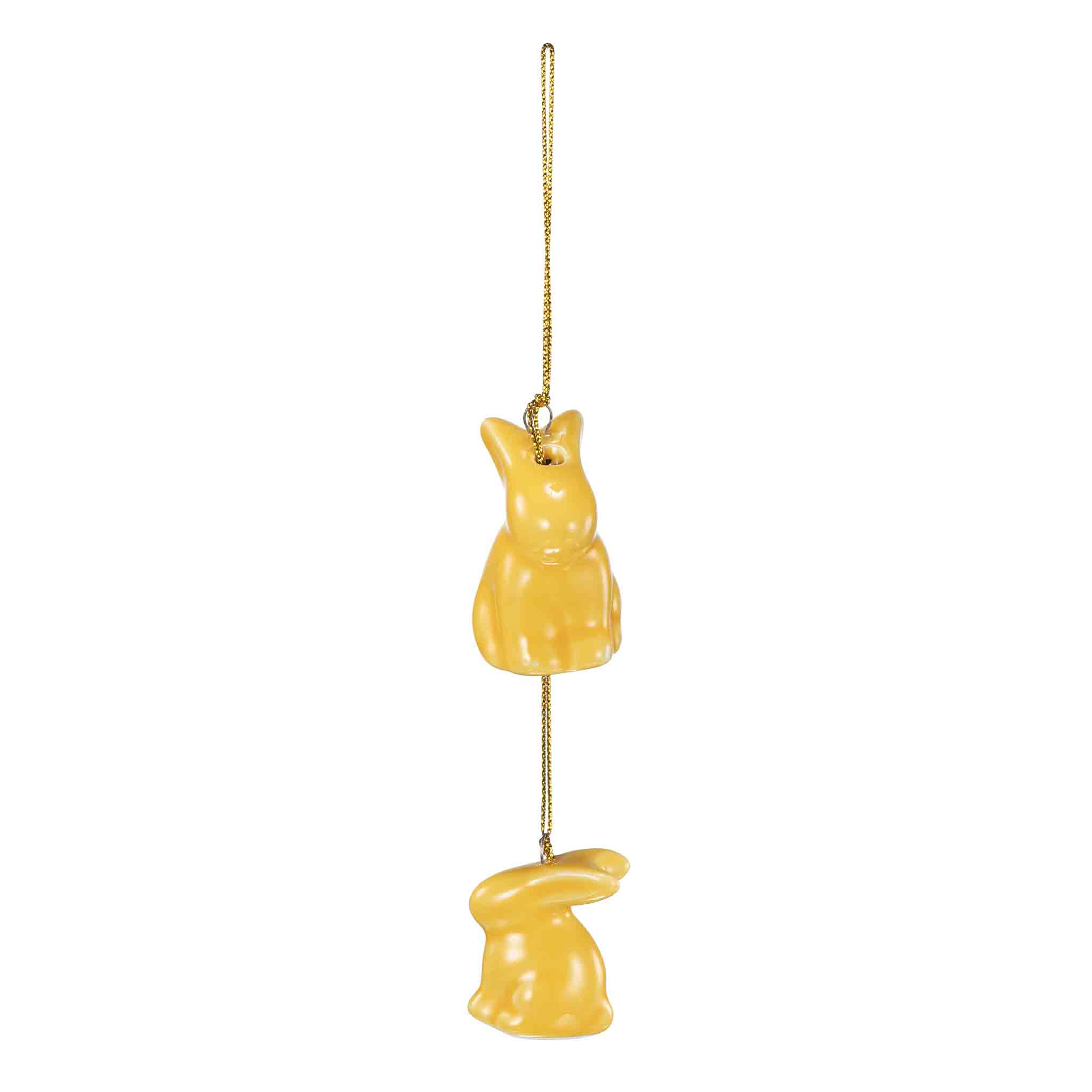 To små påskeharer henger pent på en snor og bringer litt ekstra glede til høytiden. Perfekt til gåsungene eller en kvist, som kan stå i et vindu eller på spisebordet.