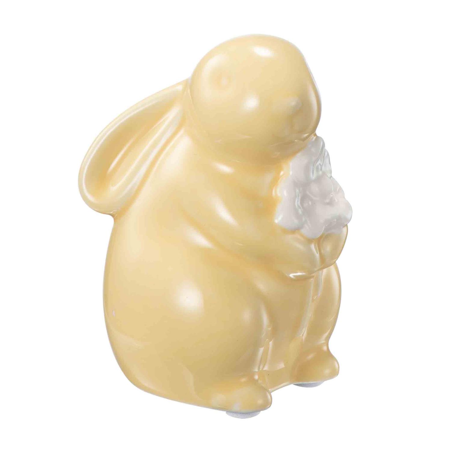 En liten kanin som er den perfekte følgesvennen påskeeggjakten? Med myke former og en koselig liten blomst i labbene passer den flott til både borddekorasjon og vinduskarmen. En vennlig liten påskegjest som trives godt med andre figurer, dekorative egg og lys i varme toner.