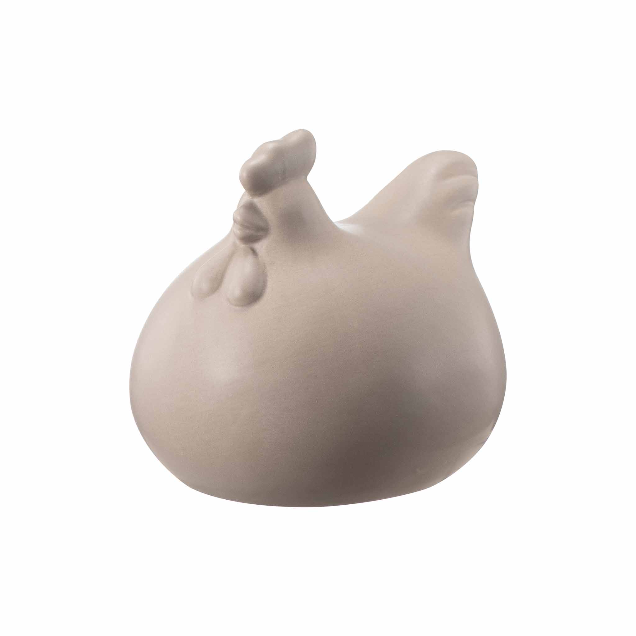 En enkel og dekorativ hønefigur i matt keramikk med myke, runde former og en rolig, lys beige tone. Hønen passer fint på et bord, i en vinduskarm eller på en hylle, og gir et diskret innslag av vår og påske i rommet. Kommer også i en mindre størrelse.