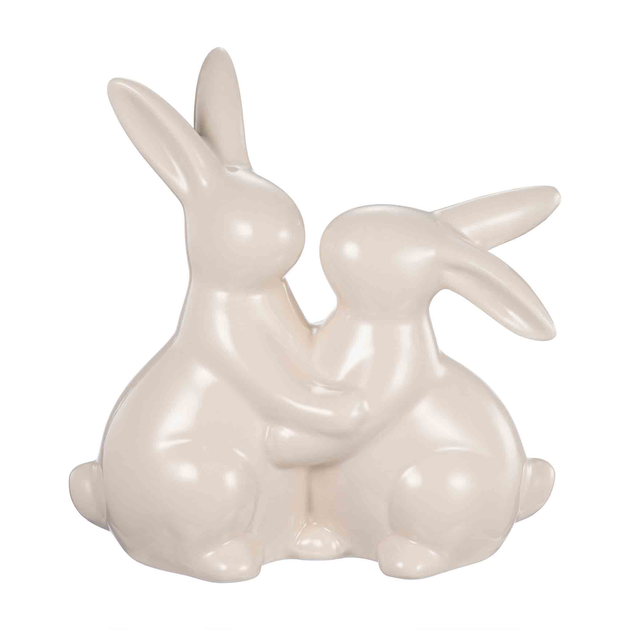 To små kaniner holder rundt hverandre og det er til å smelte av. Det enkle og elegante designen passer perfekt i alle hjem.