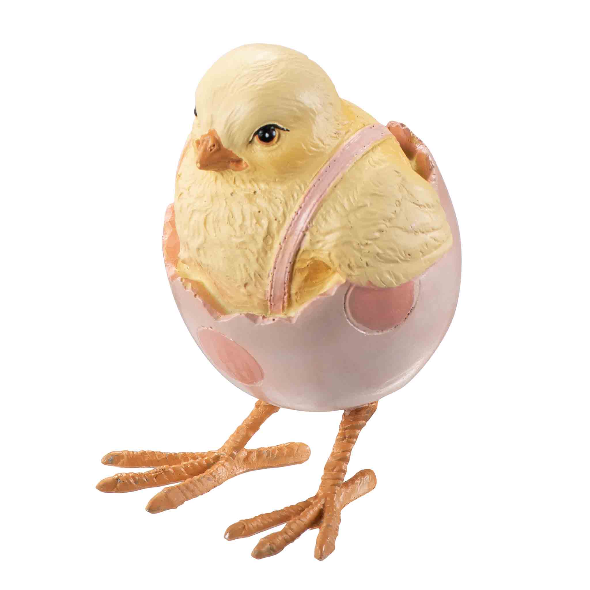 En liten kylling har akkurat brutt ut av sitt rosa egg, og ser ut til å være klar for påskens eventyr. Sett den på spisebordet, i vinduet eller på en hylle for å tilføre hjemmet ditt en livlig og koselig påskestemning.