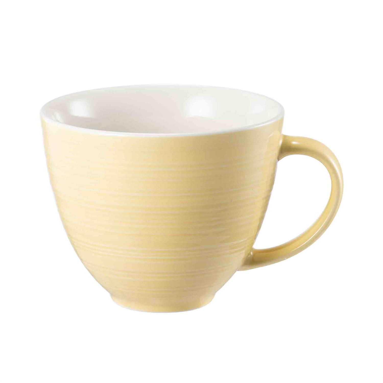 Koppen i lys gul har en myk og diskret struktur. Perfekt til morgenens kaffepause og frokost.