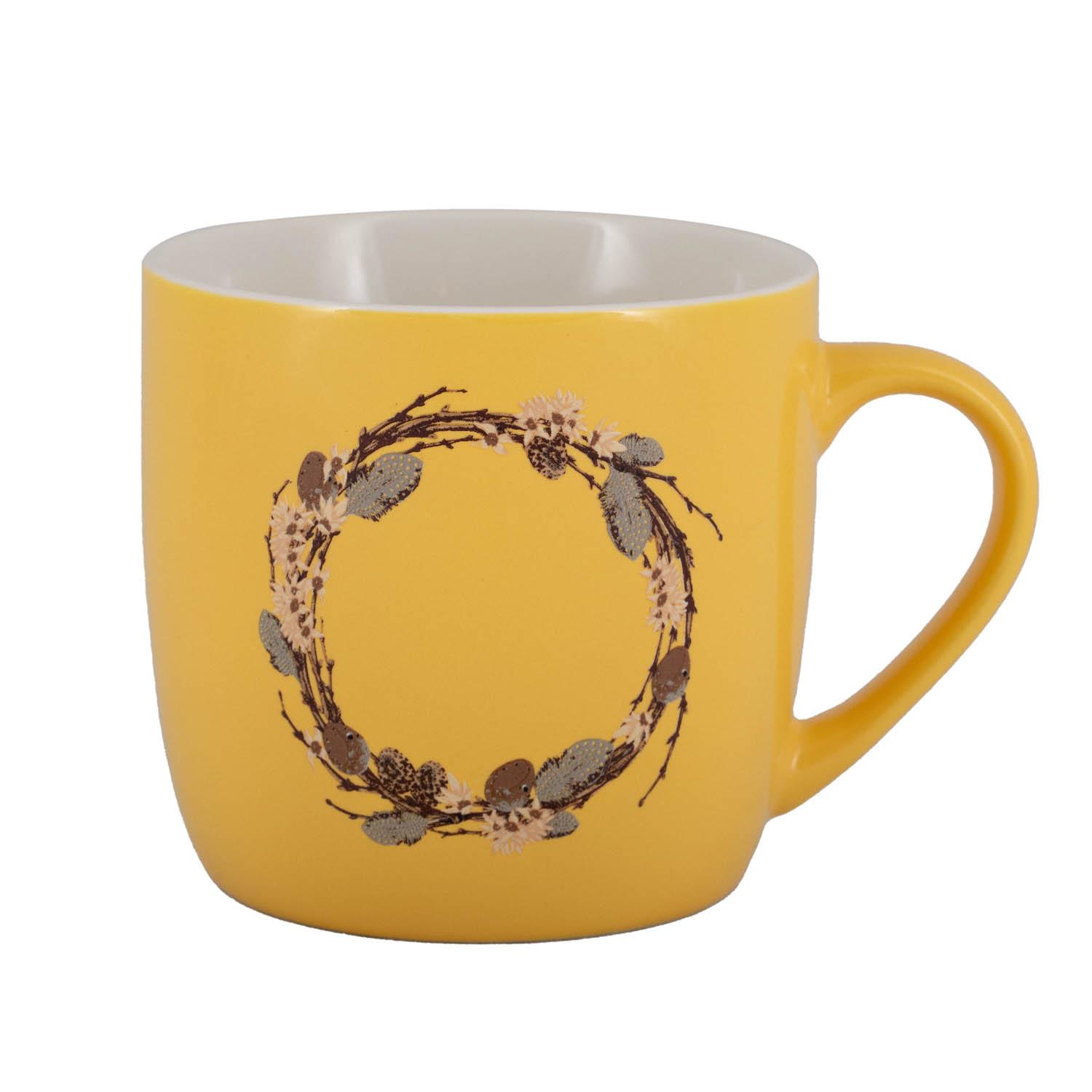 Stor og romslig kopp med koselig print av vårkrans. Kombineres med asjett i samme serie og gir en vårlig stemning over bordet. Pynt bordet med annen påskepynt, og du får skikkelig lekkert påskebord. Ikke glem påskeservietter.