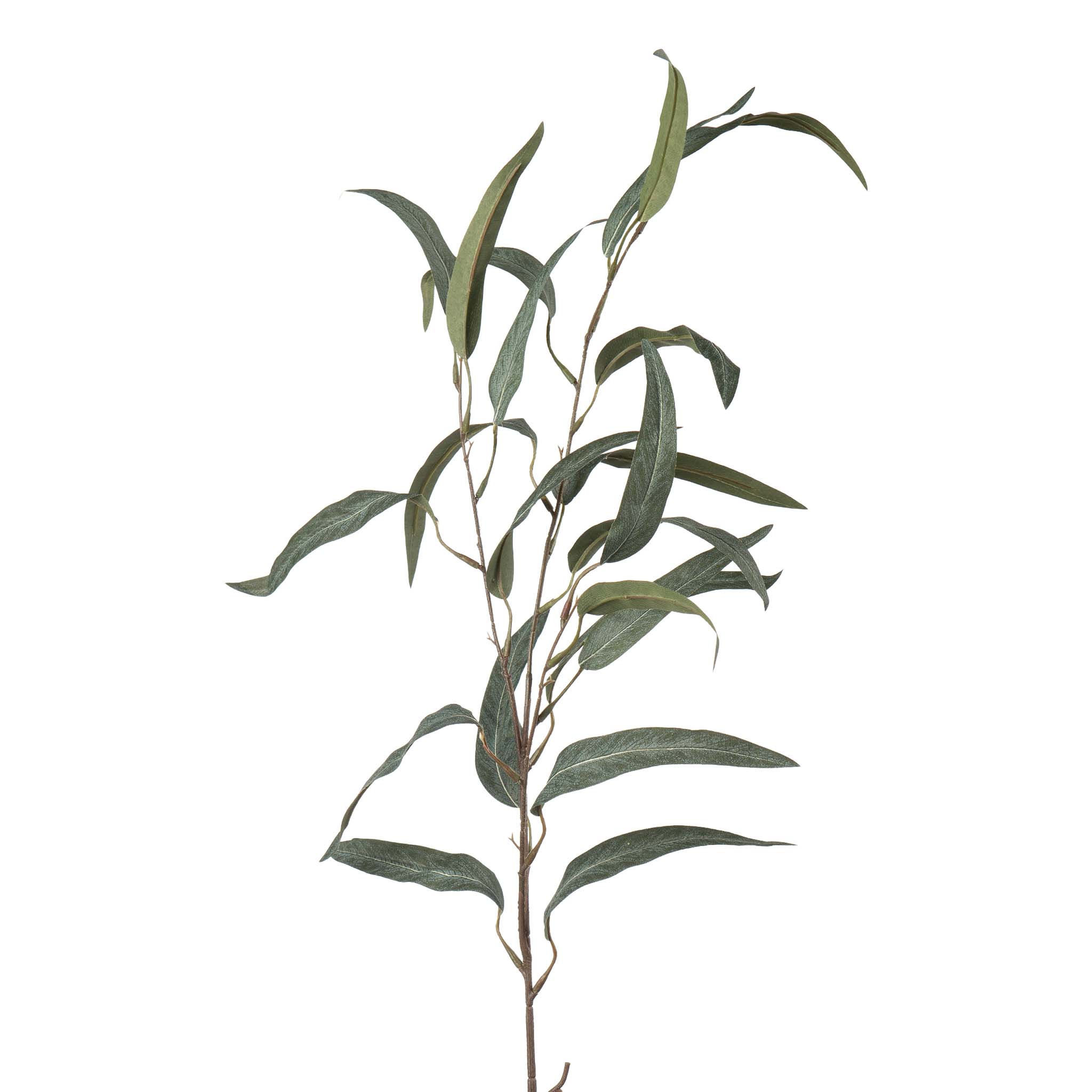 Lang og lettstelt gren med smale, grønne blader i ulike vinkler. Den bøyer seg fint og gjør seg godt både alene i en høy vase eller sammen med andre blomster.