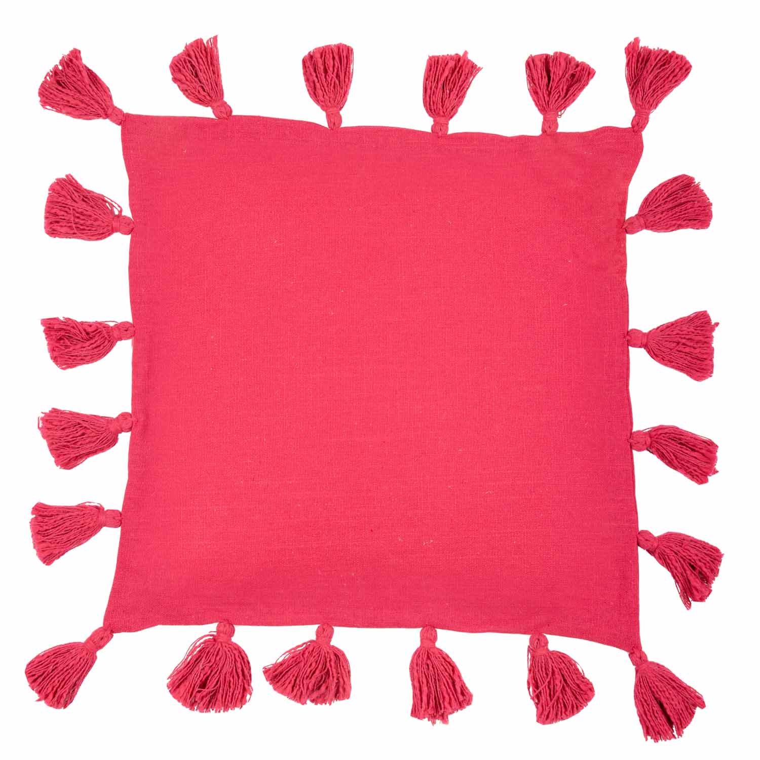 Sett farge i sofaen med denne fantastisk friske og nydelige rosa puten med tuftede dusker. Lek deg med putetrekk i ulike farger og mønstre for en unik stil.