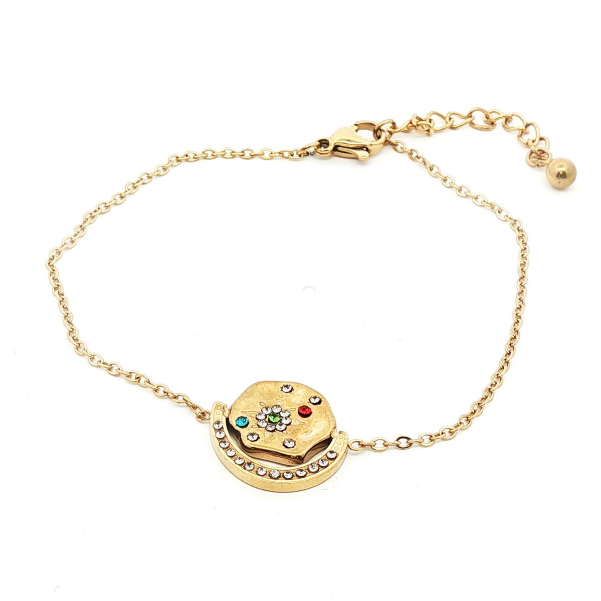 Moonchild… dette nydelig bohemske smykket med en liten stjernehimmel er helt skjønt. Gullbelagt stål med fargerike krystaller.
