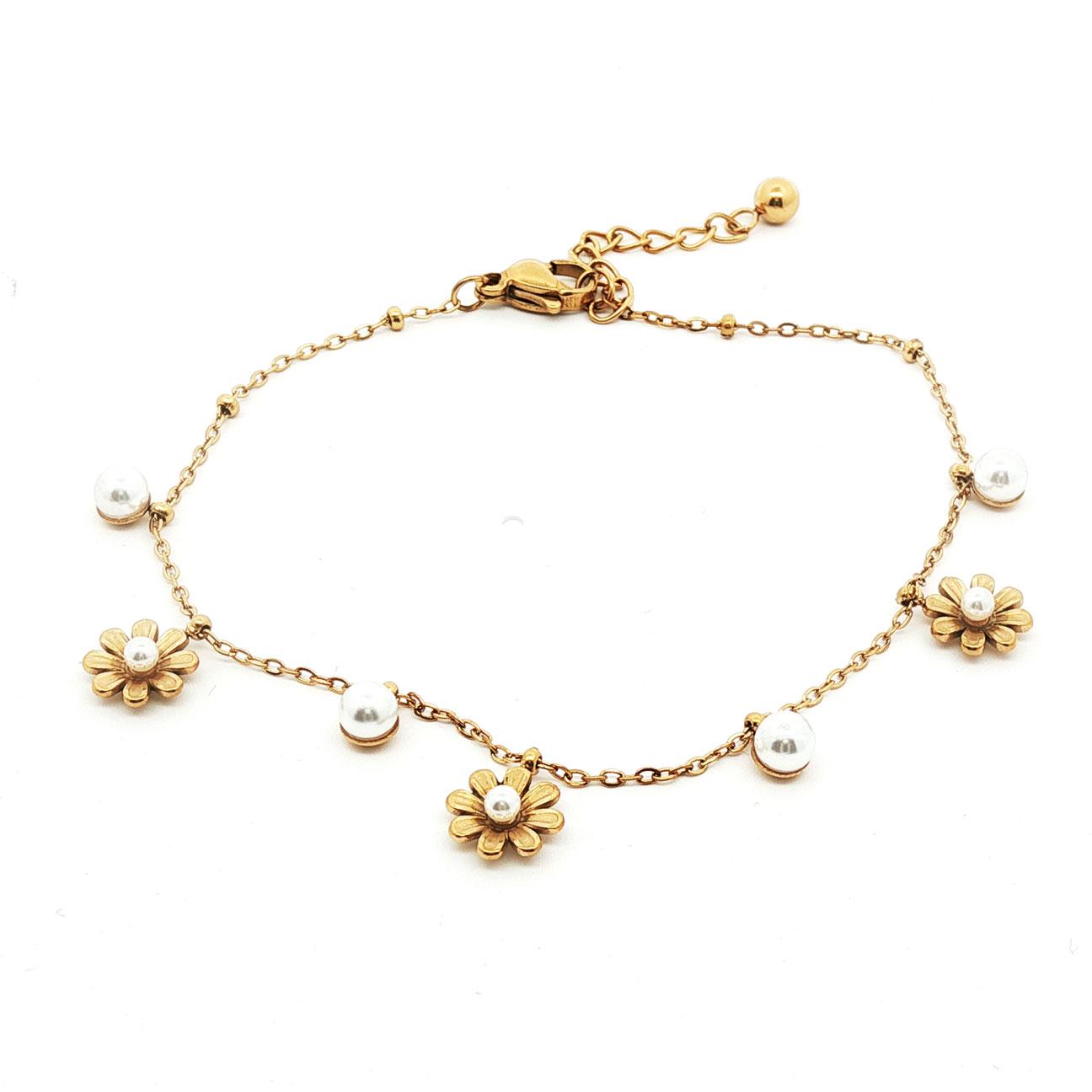 Sommernatts drøm! Nydelig charms-armbånd med gullbelagte blomster og små perler. Perfekt til en t-skjorte eller den romantiske sommerkjolen.