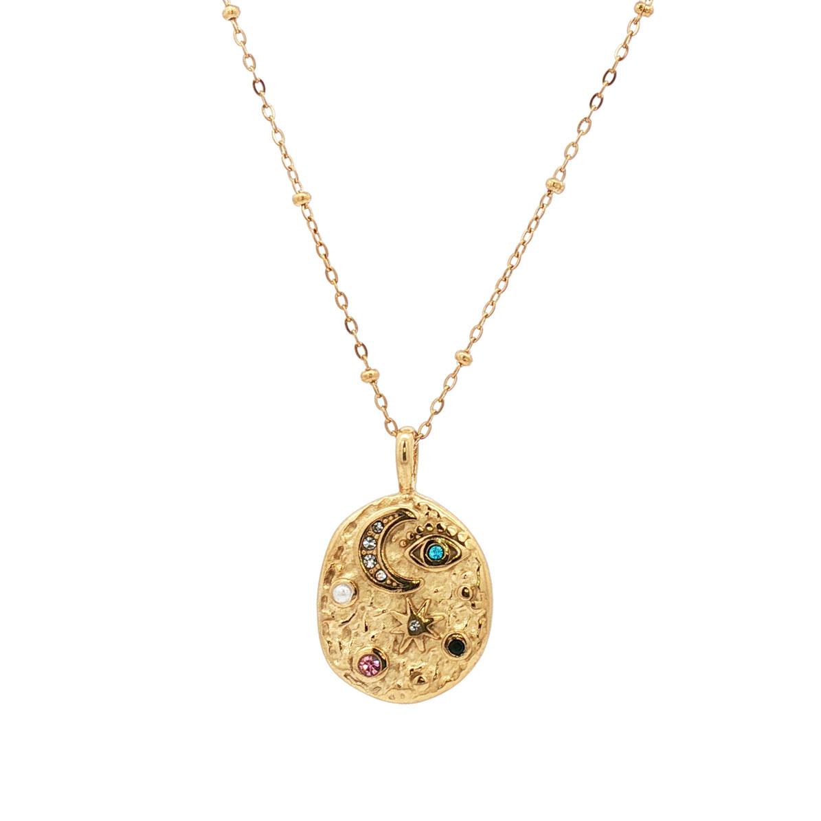 Moonchild… dette nydelig bohemske smykket med en liten stjernehimmel er helt skjønt. Gullbelagt stål med fargerike krystaller.