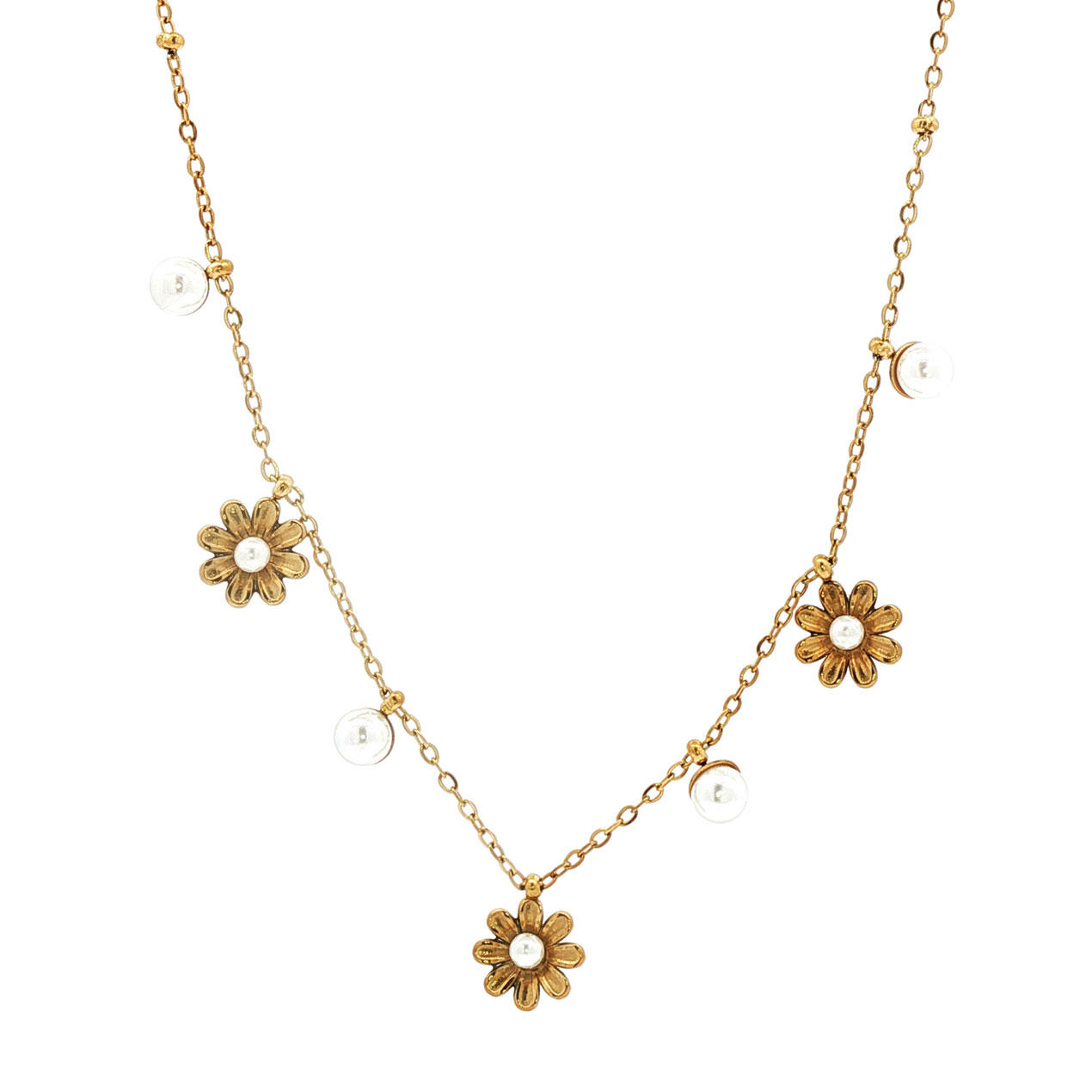 Sommernatts drøm! Nydelig charms-smykke med gullbelagte blomster og små perler. Perfekt til en t-skjorte eller den romantiske sommerkjolen.
