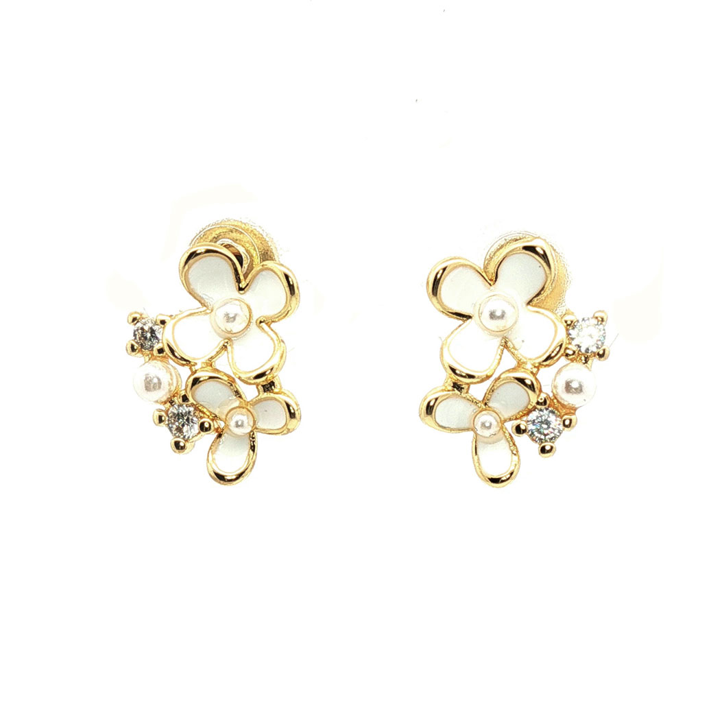 Nydelige blomsterstudsl som virkelig er en del av trendbildet til sommeren. Håndemaljerte blomster med gullebelagt metall. Fantastisk til sommerkjolen!