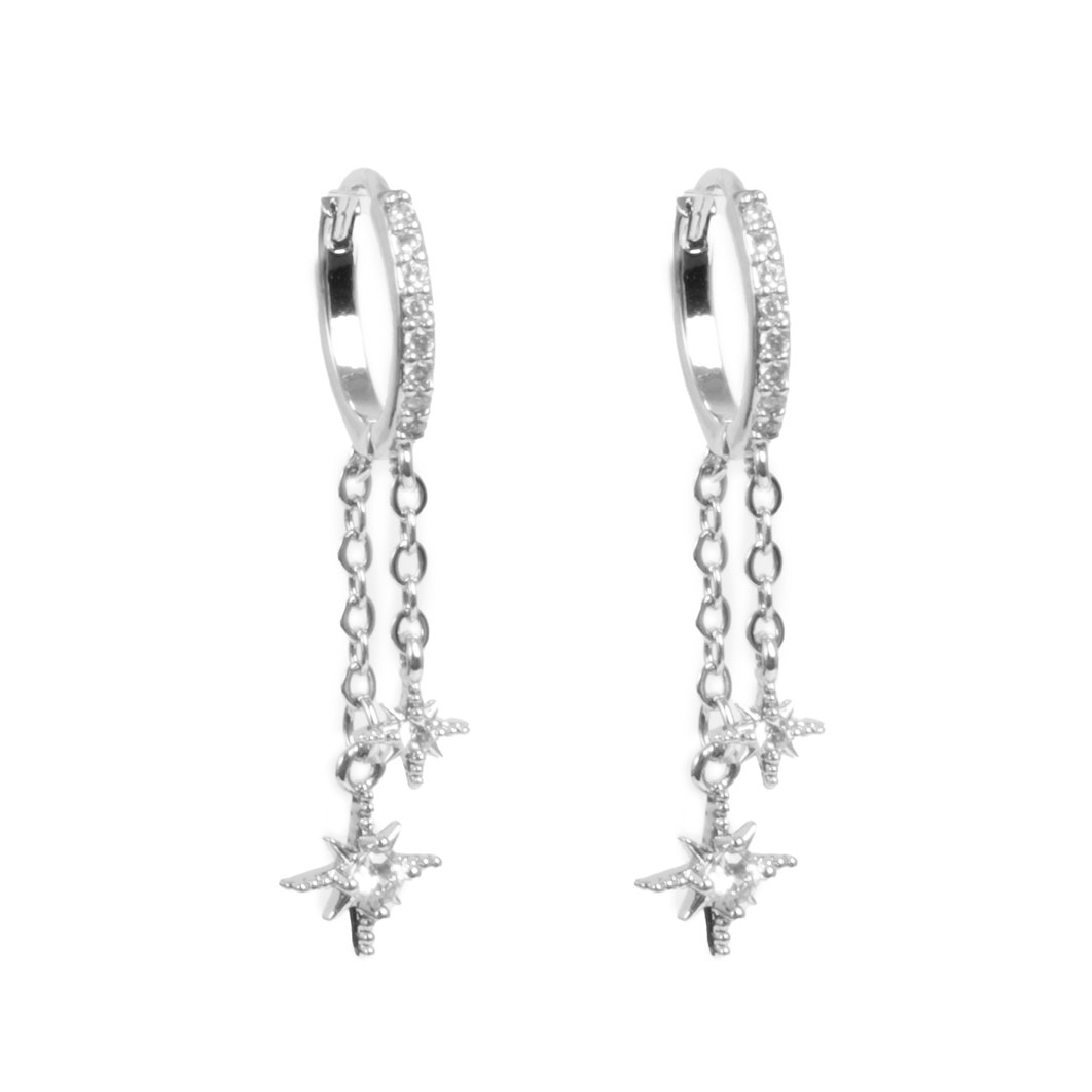 Utrolig lekre kreoler med hengende stjerneskudd i tynne lenker, sølvbelagt med zirconer.