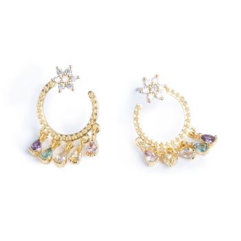 Øreringer med charm i gull, dekorert med stjerne og hengende diamanter i søte pastellfarger.
