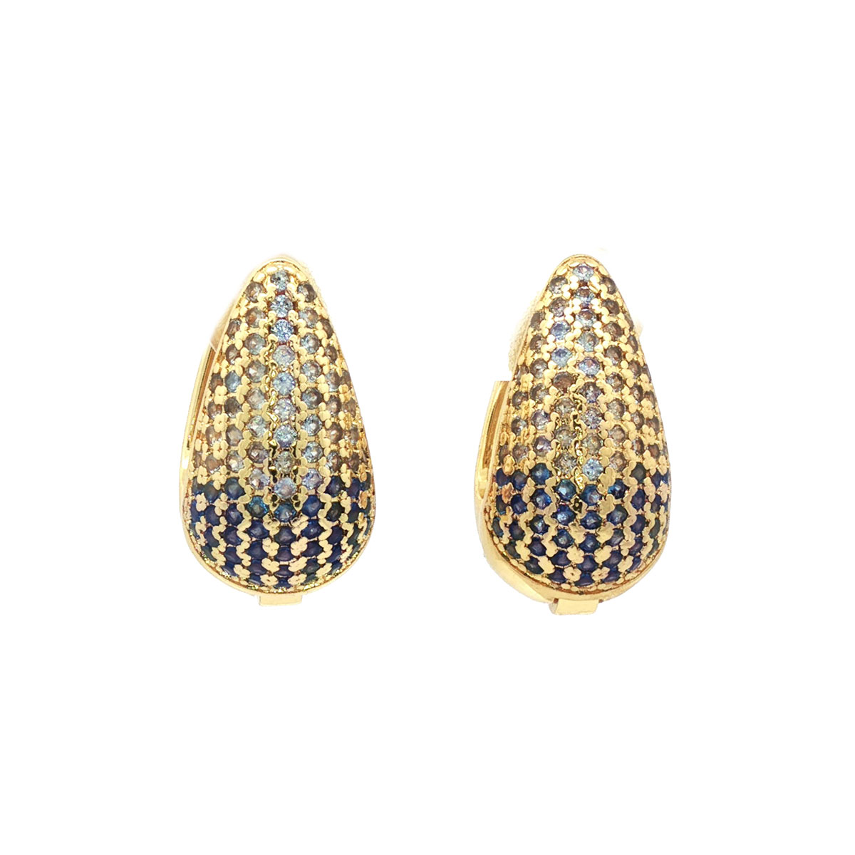 Dråpeformede øredobber i gullfarget metall med glitrende stener i blåtoner med ombre effekt. Et elegant tilskudd til både hverdagsantrekk og festlook. Kombinasjonen av blått og gull gir øredobbene et sofistikert og tidløst uttrykk.