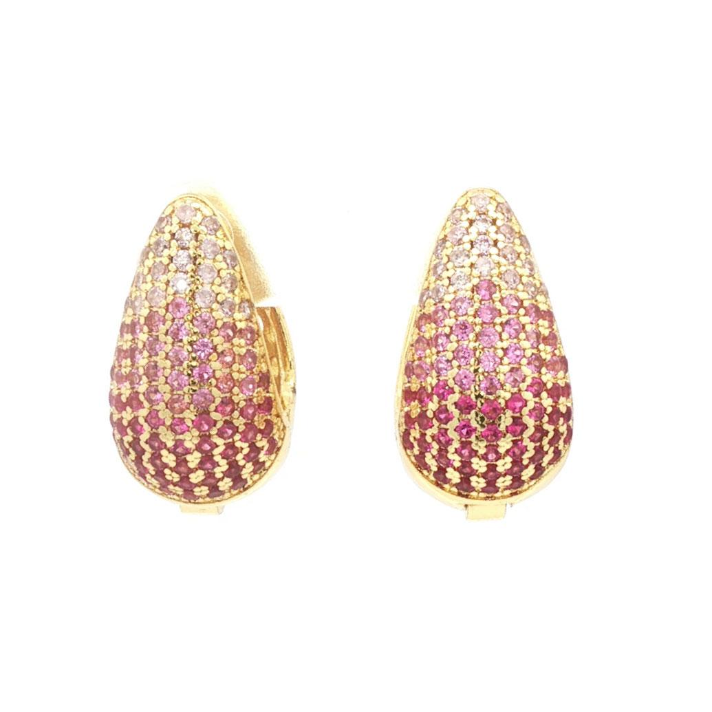 Glitrende dråpeformede øredobber i gullfarget metall, dekorert med rosa stener. Øredobbene kombinerer en feminin stil med en touch av glamour – perfekt til både hverdag og fest. Den lune fargepaletten gjør dem enkle å matche med både lyse og mørke antrekk.