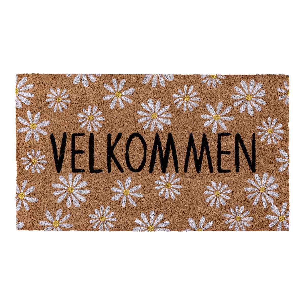 En sjarmerende dørmatte med hvite prestekrager. Den slitesterke kokosoverflaten er praktisk, samtidig som den skaper en hyggelig stemning allerede før døren åpnes.