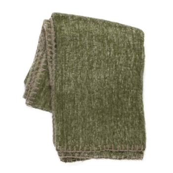 Delikat og mykt pledd i ullblanding i en nydelig grønn farge som passer i de fleste hjem. Kryp opp i sofaen når høstmørke sniker seg på og hold deg varm med pledd og en god kopp te.
