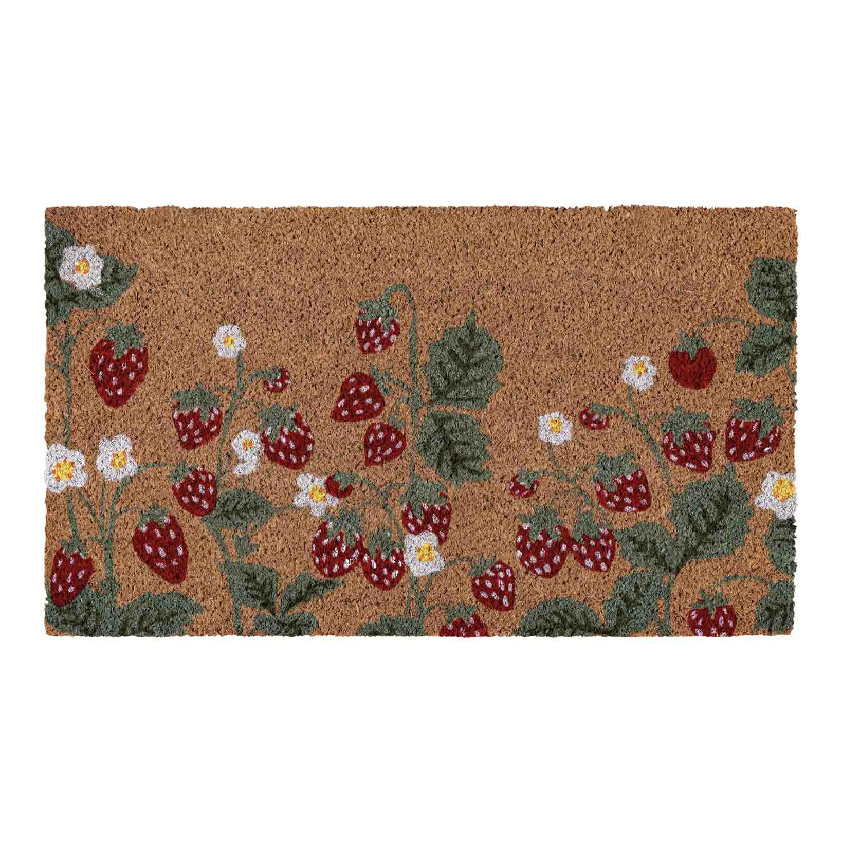En dørmatte som sprer sommerstemning året rundt med sitt sjarmerende jordbærmotiv. Den grove kokosfiberstrukturen gjør det enkelt å børste av skoene før du går inn, samtidig som matten gir inngangspartiet et varmt og livlig uttrykk. Passer perfekt ved ytterdøren, på balkongen eller i gangen. Et lite blikkfang som ønsker både deg og gjestene velkommen på en hyggelig måte.