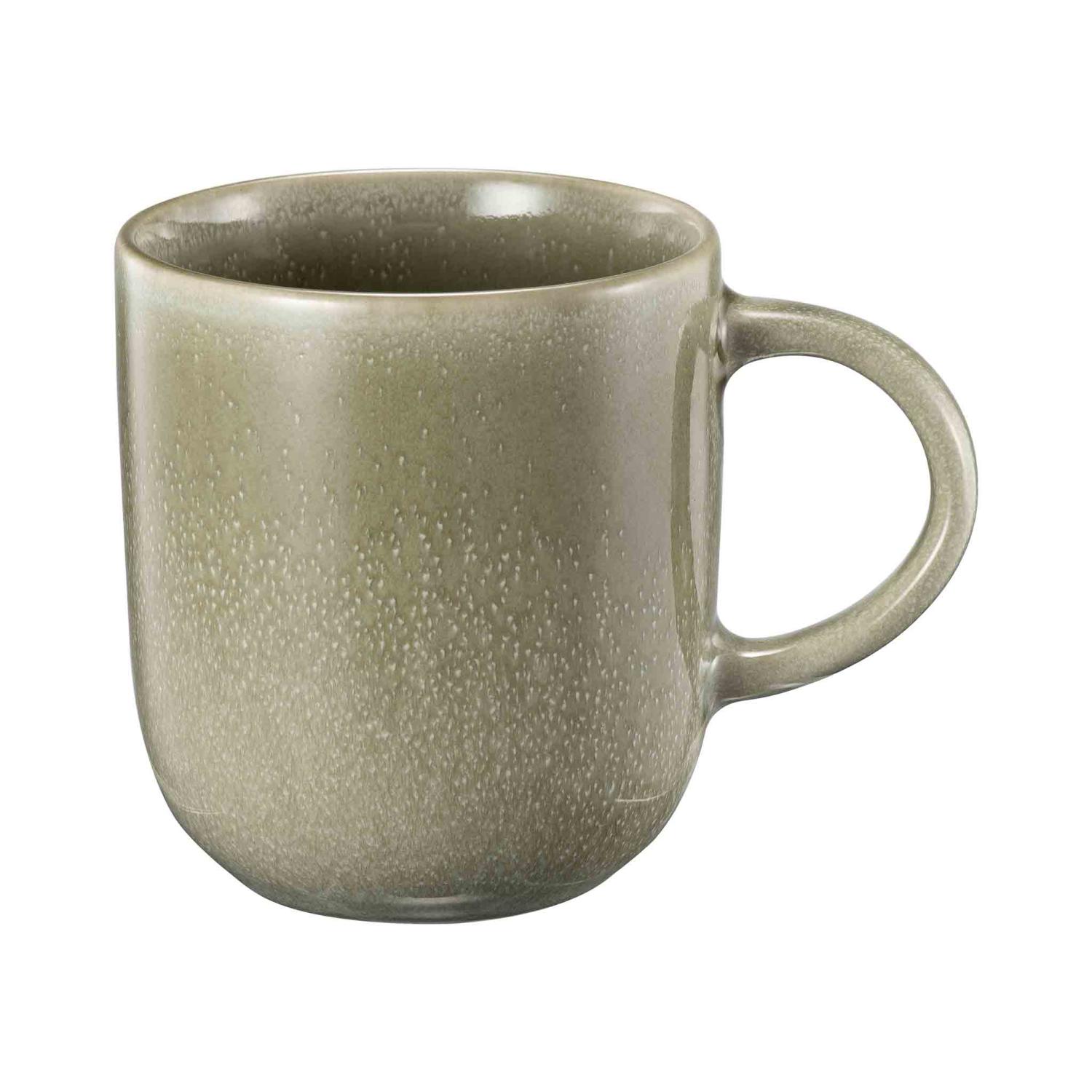 En myk, grønn kopp med glasering som gir en behagelig og naturlig look. Den runde formen ligger godt i hånden og gjør den perfekt til både morgenkaffen og en rolig kopp te på kvelden.