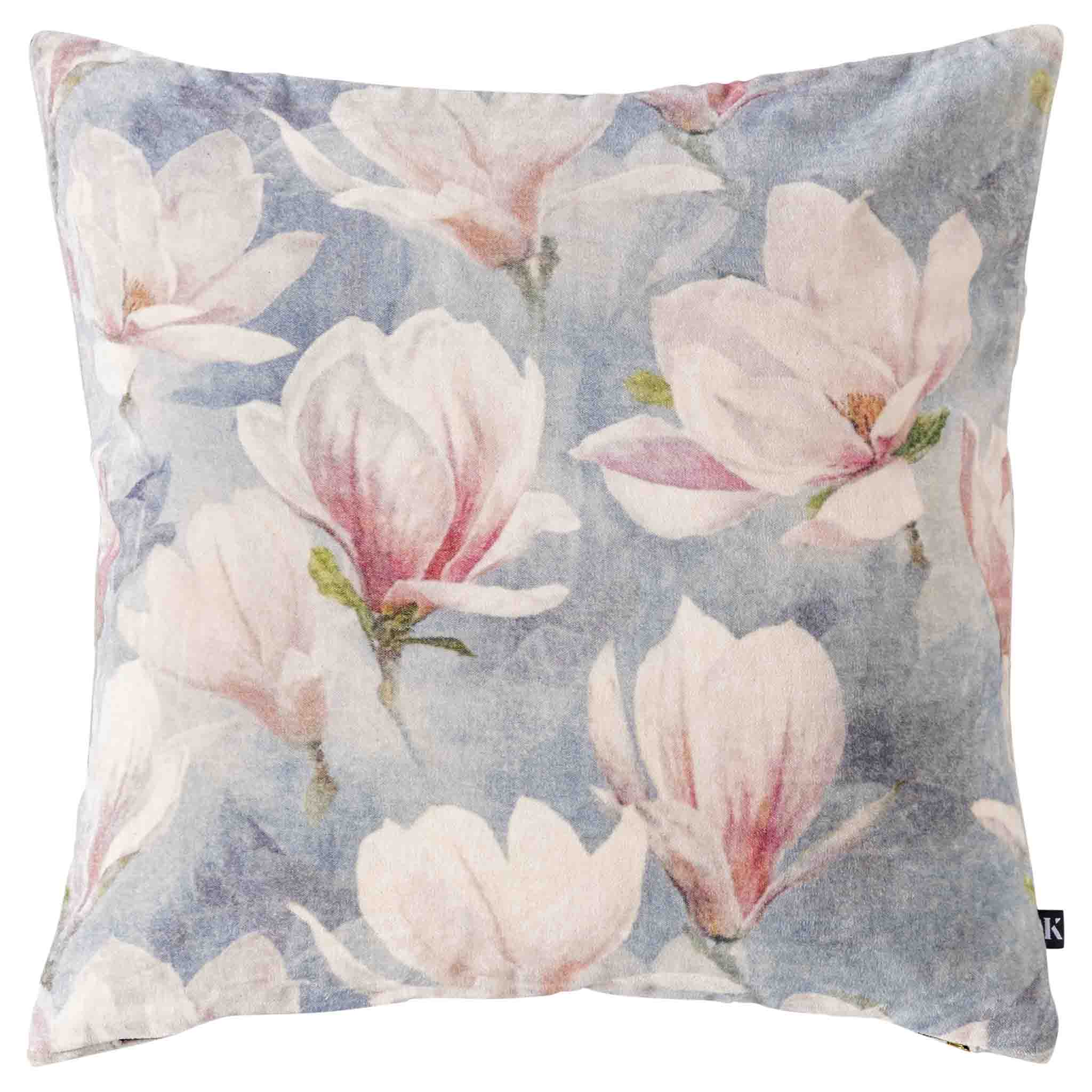 Vakkert putetrekk i velur med magnoliablomster. Suppler med andre putetrekk i lyse og dype blåfarger for å skape et fokuspunkt i sofaen. For en dusere look kan du kombinere med ensfargede puter i forskjellige teksturer.